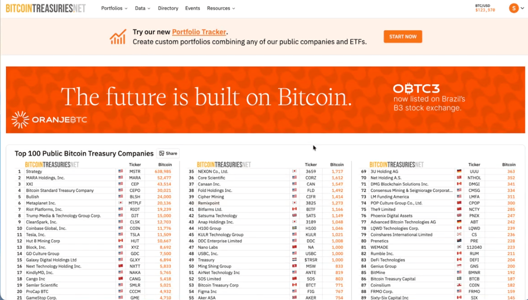 “Partnering with BitcoinTreasuries.net gives us a powerful platform to showcase our strategy to a global audience, build lasting credibility, and drive investor education as we enter the public markets,” said Guilherme Gomes, CEO of Oranje.