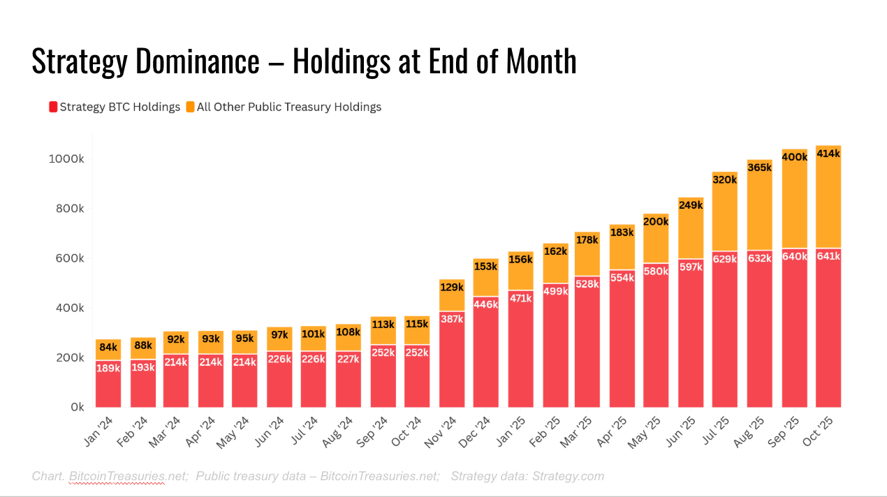 Strategy’s dominance in Bitcoin treasury funding continues its decline.