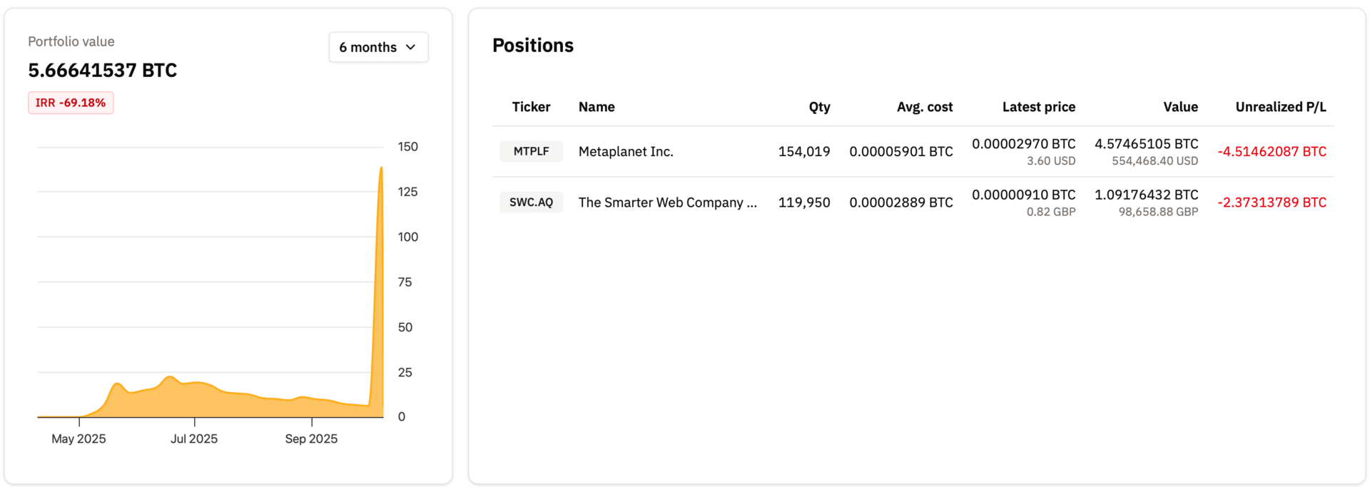 We’ve created a live Bitcoin Treasury portfolio tracker that offers fresh data on market value, unrealized P/L, and IRR over a specific time period. Every position updates in real time so you can watch discounts to mNAV widen or close as catalysts play out.